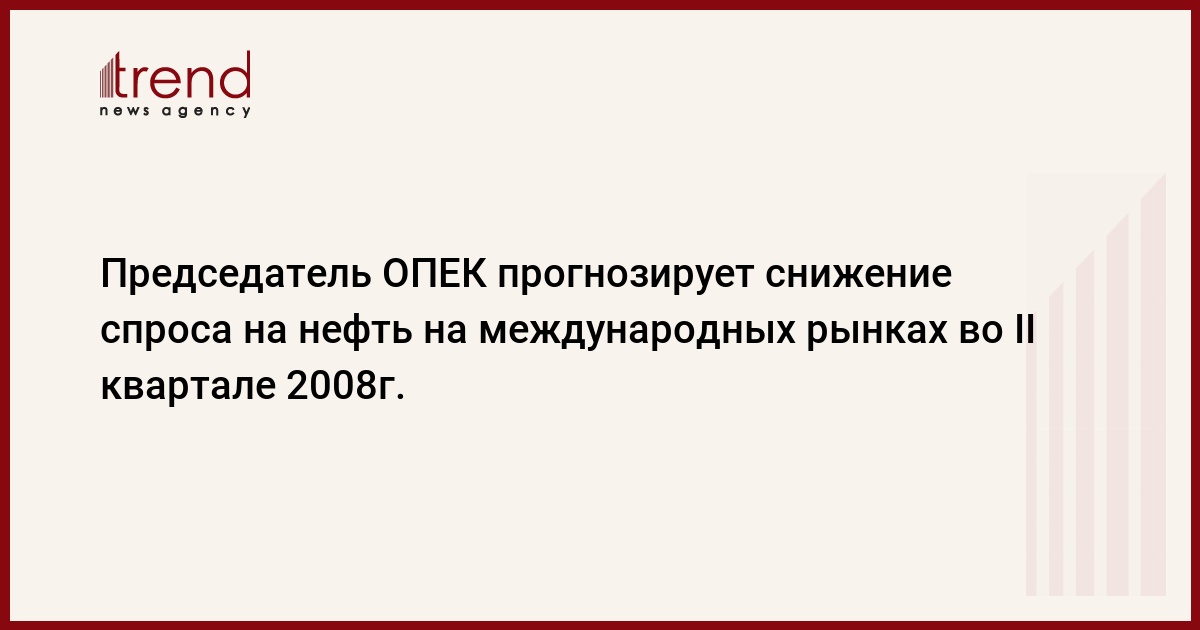 Как напоминает РБК, 5 марта с.г. ОПЕК на заседании в Вене приняла решение сохранить объем добычи нефти на прежнем уровне. Ранее на заседании 1 февраля с.г. ОПЕК решил сохранить существующий объем нефтедобычи до начала II квартала с.г. С 1 декабря 2007г. квота нефтедобычи для 10 стран картеля, куда не входят Ангола, Ирак и Эквадор, составляет 27,253 млн барр./день.
