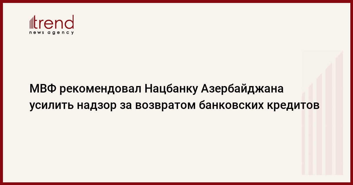 МВФ признает впечатляющее положение в системе банковского надзора, но из-за повышения риска в связи с удвоением по итогам 2007 года объема кредитных вложений банками в экономику страны, рекомендовал усилить надзор. [На 1 января 2008 года объем кредитных вложений составил 4664,6 млн. манатов]. Для этого предложено использовать систему отслеживания за погашением заемщиками кредитов, так как при таких темпах роста кредитного портфеля банковского сектора в будущем может повыситься число неработающих кредитов.