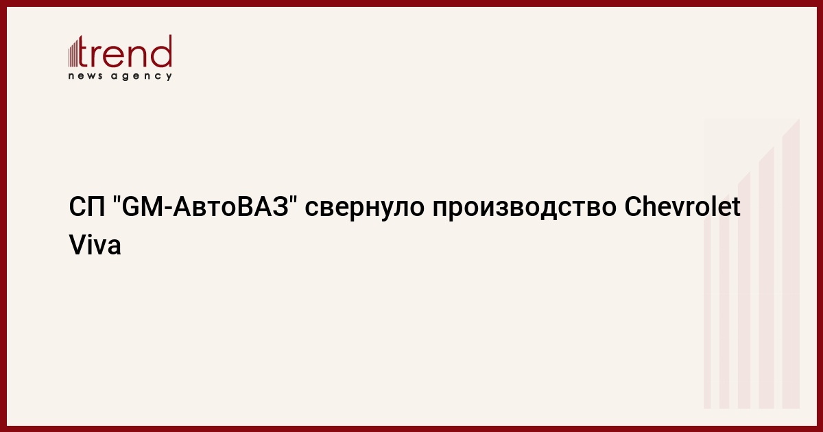 Совместное предприятие "GM-АвтоВАЗ" полностью прекратило производство автомобилей Chevrolet Viva. Об этом, как сообщает Лента со ссылкой на Интерфакс, в понедельник заявил директор по маркетингу и продажам компании Константин Байшев. По его словам, выпуск таких машин, фактически, был свернут еще около трех недель назад, а суммарные объемы сборки Viva в последнее время не превышали тысячи штук в год.