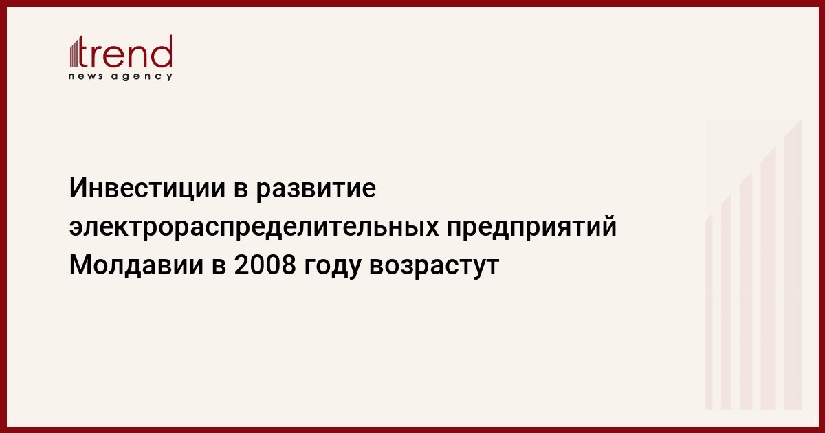 Общий объем инвестиций электрораспределительных предприятий Молдавии в свое развитие в 2008г составит, по уточненным данным, 305,3 млн леев (28,8 млн долл), сообщили в Национальном молдавском агентстве по регулированию в энергетике (ANRE), передаёт РБК .