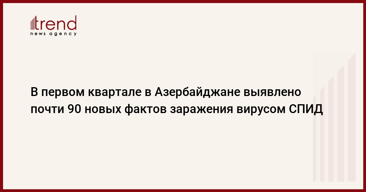 Азербайджан, Баку, 9 апреля / корр. Trend С.Бабаева/ За первый квартал 2008 года в Азербайджане выявлено около 90 новых фактов заражения вирусом СПИД, из которых 88 человек являются гражданами Азербайджана и одна иностранка, говорится в сообщении республиканского центра борьбы со СПИДом.