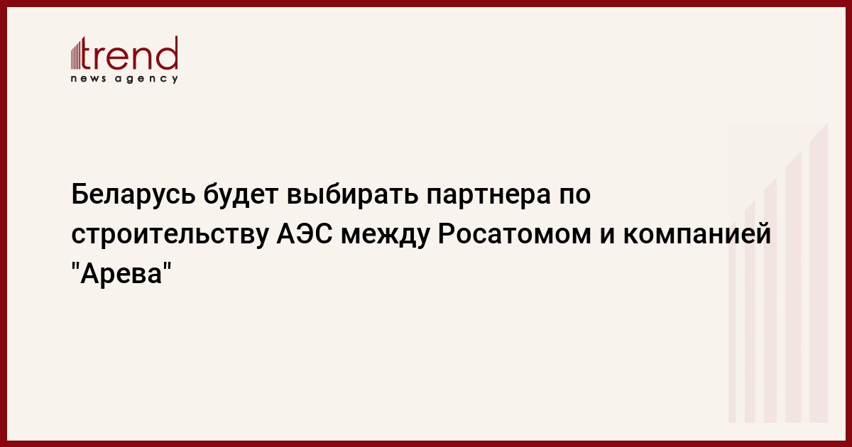 Окончательный выбор партнера Беларуси по строительству АЭС будет сделан между Росатомом и компанией "Арева", сообщил сегодня первый заместитель премьер-министра Беларуси Владимир Семашко на пресс-конференции в Минске, передает БЕЛТА.