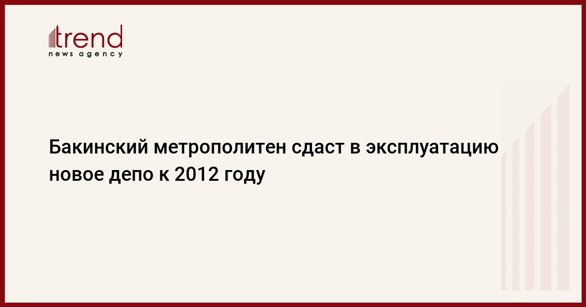 Азербайджан, Баку, 2 августа /корр. Trend Э.Исмаилов/ В 2012 году Бакинский метрополитен планирует сдать в эксплуатацию новое депо метро, сказал в субботу глава Бакинского метрополитена Таги Ахмедов. Новое депо будет располагаться в районе седьмого микрорайона.
