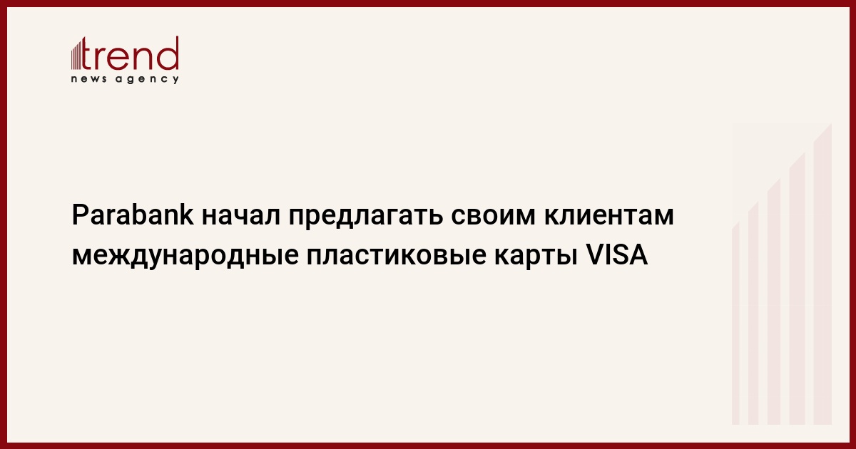 Азербайджан, Баку 4 августа / Trend / Портфель пластиковых карт ОАО Parabank пополнился новыми продуктами - тремя видами международной пластиковой карты VISA: VISA Electron, VISA Classic и VISA Gold. Как сообщает банк, каждый вкладчик и получатель кредита Parabank становится владельцем пластиковых карт VISA.