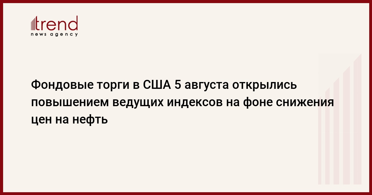 Фондовые торги в США 5 августа 2008г открылись повышением ведущих индексов на фоне снижения цен на нефть, передает РБК .