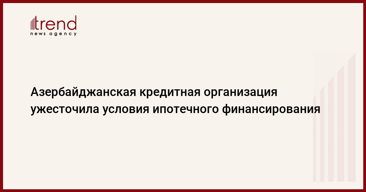Азербайджан, Баку, 8 августа /корр. Trend И.Халилова/ Небанковская кредитная организация TBC Credit (именуемая ранее SOA Credit) пересмотрела условия выдачи кредитов по ипотечной программе, повысив процентную ставку на 6-8 процентов, сказал в пятницу заместитель председателя организации Аждар Алиев.