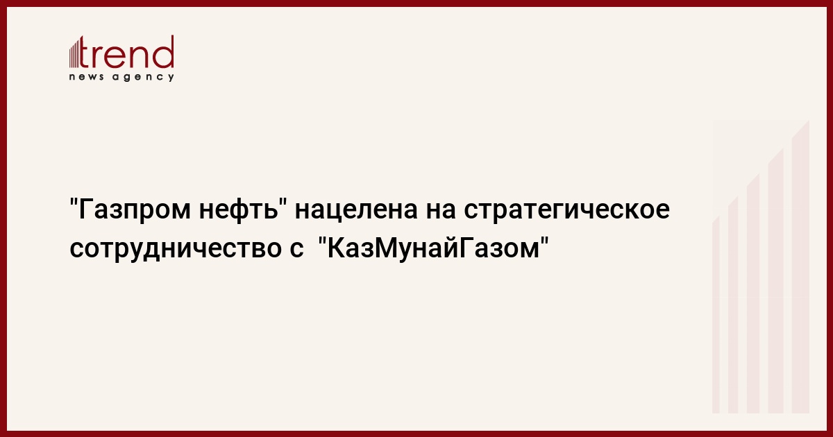 Российское ОАО "Газпром нефть" нацелено на стратегическое сотрудничество с национальной нефтегазовой компанией Казахстана "КазМунайГаз", сообщает Интерфакс-Казахстана.