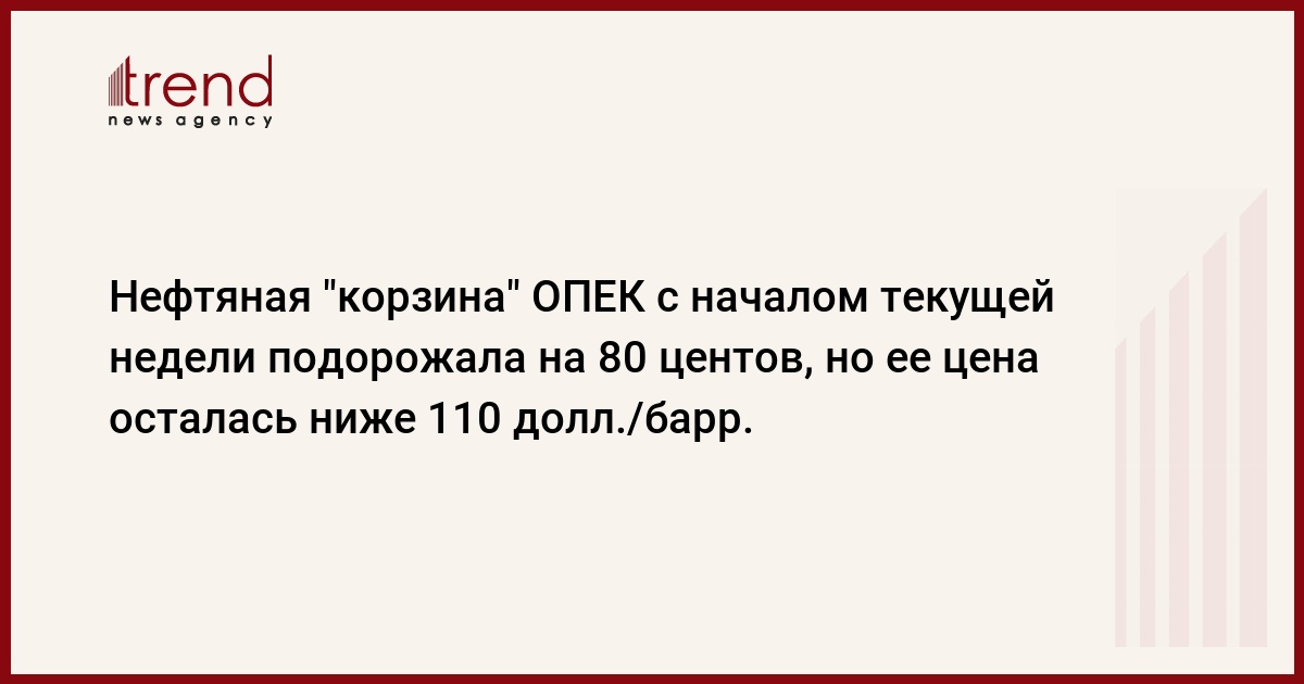 Термин "корзина" ОПЕК (OPEC Reference Basket of crudes) был введен в официальную лексику нефтяного рынка с 1 января 1987г. и с тех пор остается одним из главных ценовых индикаторов мирового рынка нефти. "Корзина" является совокупным среднеарифметическим показателем цены нефти, которую поставляют на мировой рынок страны ОПЕК. С марта 2008г. "корзина" представлена следующими 13 нефтяными марками: Saharan Blend (Алжир), Girassol (Ангола); Oriente (Эквадор); Minas (Индонезия), Iran Heavy (Иран), Basra Light (Ирак), Kuwait Export (Кувейт), Es Sider (Ливия), Bonny Light (Нигерия), Qatar Marine (Катар), Arab Light (Саудовская Аравия), Murban (ОАЭ) и BCF 17 (Венесуэла).