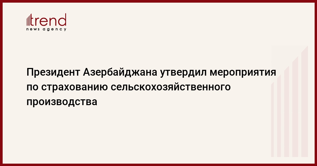 Азербайджан, Баку, 26 августа /корр. Trend У.Исмайлова/ В рамках "Государственной программы надежного обеспечения населения Азербайджана продовольственными продуктами в 2008-2015 годах", президент страны Ильхам Алиев утвердил мероприятия по страхованию в сельском хозяйстве, сообщает официальная пресса.