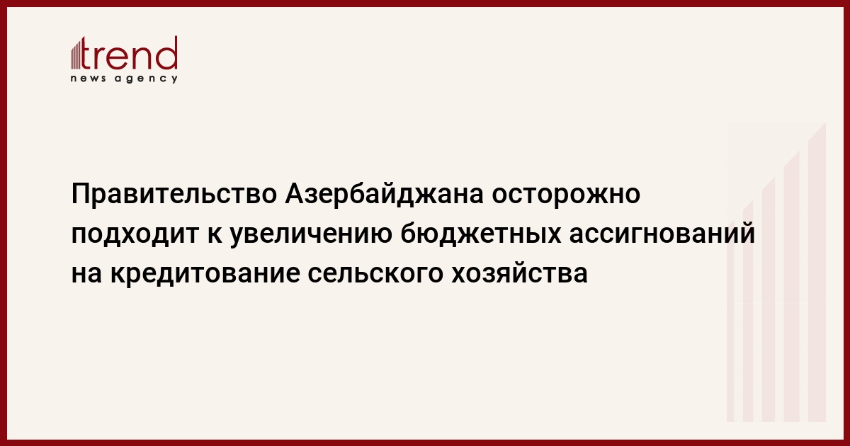 Азербайджан, Баку, 26 августа /корр. Trend И.Халилова/ Правительство Азербайджана планирует с 2009 года увеличить кредитование аграрного сектора за счет бюджетных средств и предварительно на эти цели предусмотрено выделить 7,5 млн. манатов, сказал во вторник генеральный директор Госагентства по сельскохозяйственным кредитам при Министерстве сельского хозяйства Разим Велиев. Ранее бюджетные ассигнования на эти цели с будущего года планировалось увеличить до 30 млн. манатов.