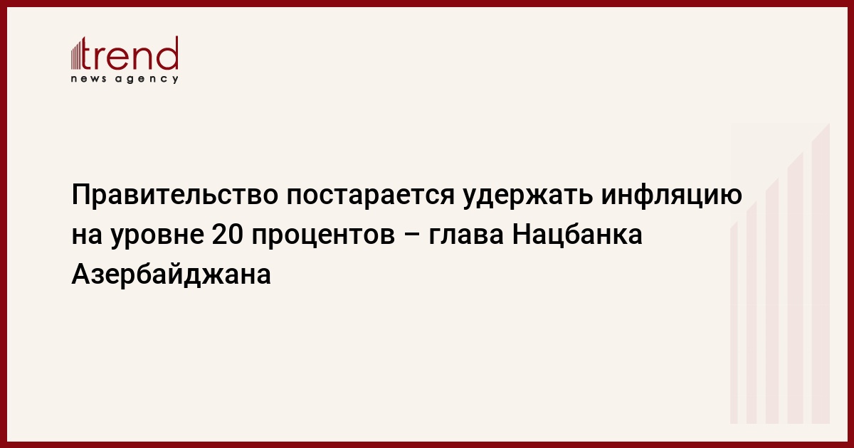 Азербайджан, Баку, 4 сентября /корр. Trend У.Исмайлова/ "Правительство Азербайджана постарается удержать среднегодовую инфляцию в 2008 году на нынешнем уровне - 20 процентов", - сказал в четверг Trend председатель правления Национального банка Азербайджана Эльман Рустамов.