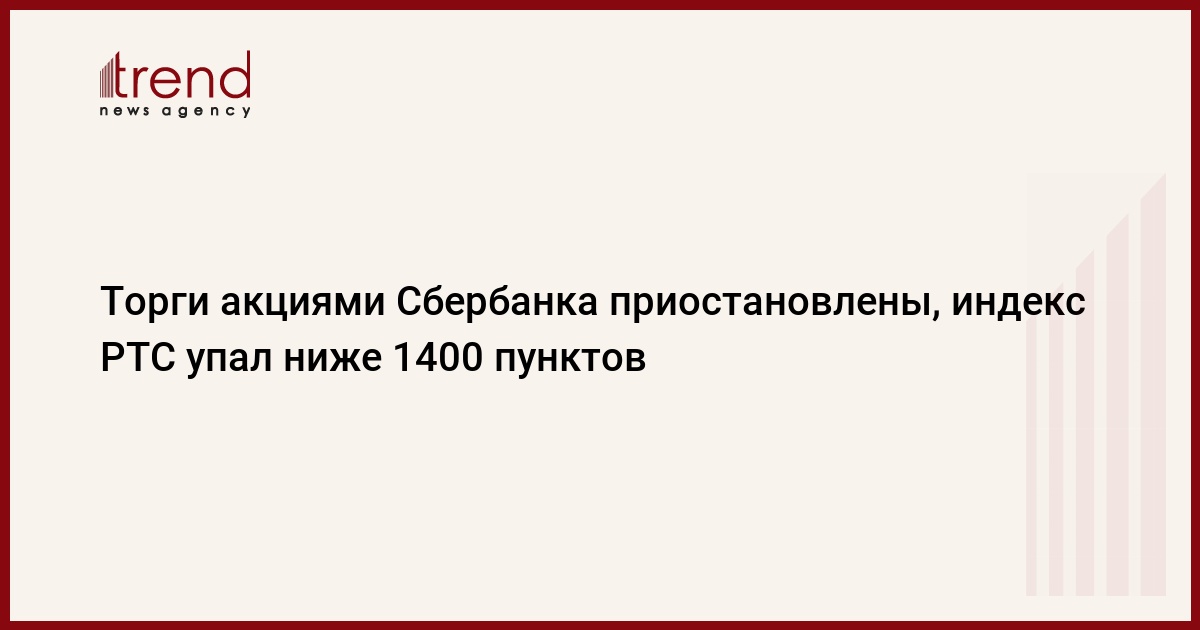 Российская торговая система (РТС) приостановила торги акциями Сбербанка и "Уралсвязьинформа" с 17:45 по московскому времени на час из-за падения цены более чем на 10%, передает "Интерфакс".