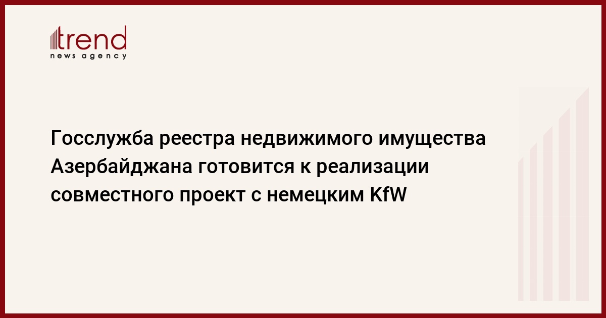 Правительство Азербайджана и Германский банк развития (KfW) подписали меморандум о взаимодействии для выделения кредита и внедрения единой системы регистрации недвижимого имущества в середине июня.