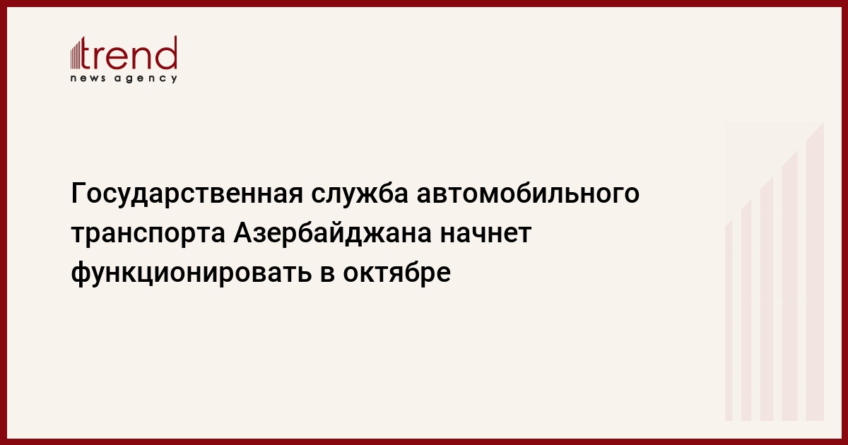 Азербайджан, Баку, 16 сентября /корр. Trend Э.Исмайлов/ "В октябре начнет свою работу Государственная служба автомобильного транспорта, которая создается на базе ООО "Автонаглиятсервис" (департамент автотранспорта)", - сказал во вторник глава пресс-службы министерства транспорта Азербайджана Намик Гасанов.