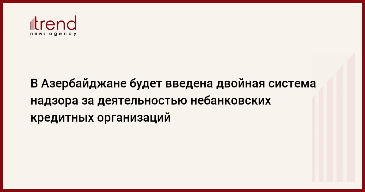 Азербайджан, Баку, 17 сентября /корр. Trend И.Халилова/ "Для регулирования деятельности небанковских кредитных организаций (НБКО) Национальный банк Азербайджана (НБА) намерен установить двойной надзор", - сказал заместитель председателя правления НБА Руфат Асланлы на проходящей в Баку Азербайджанской микрофинансовой конференции. Такая необходимость появится после принятия нового закона "О небанковских кредитных организациях", который уже представлен на рассмотрение парламента.