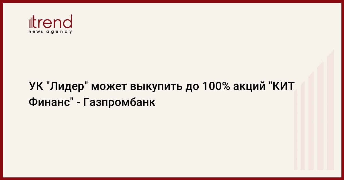 УК "Лидер" может выкупить до 100% акций инвестбанка "КИТ Финанс", говорится в сообщении Газпромбанка, передает РИА Новости.