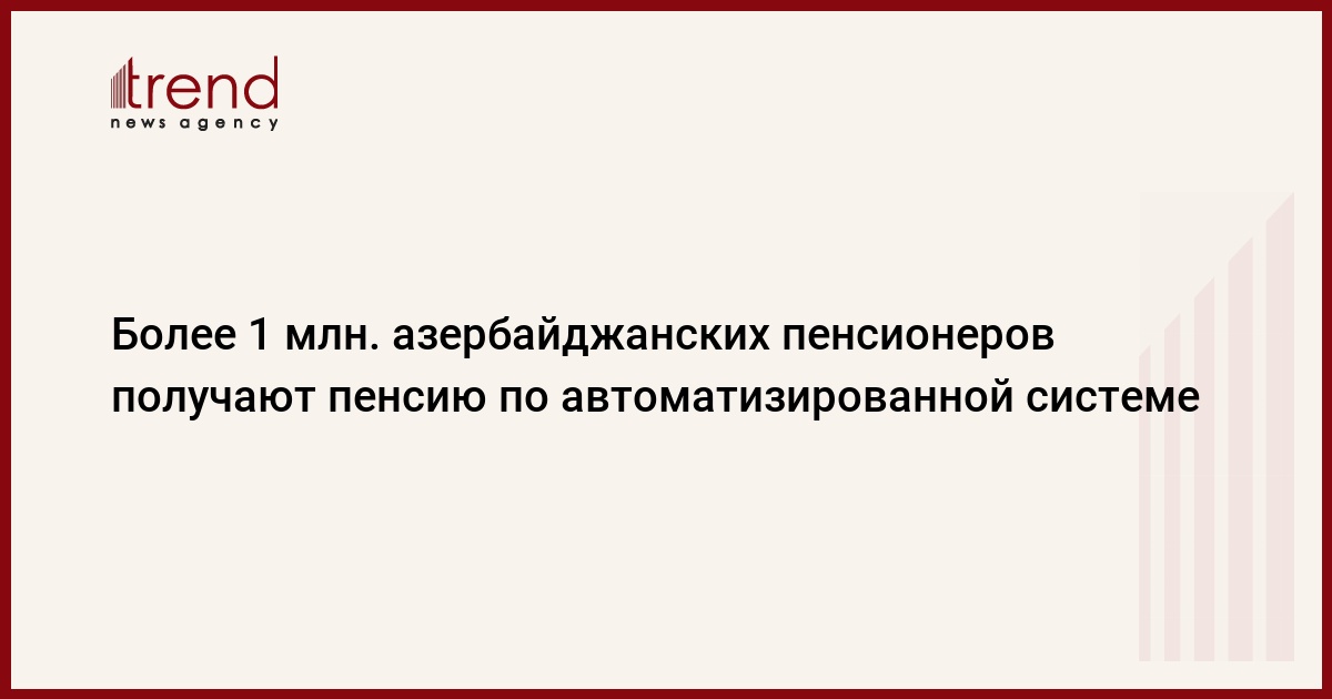 По данным Государственного комитета по статистике Азербайджана, в стране зарегистрировано более 1,2 млн. пенсионеров.