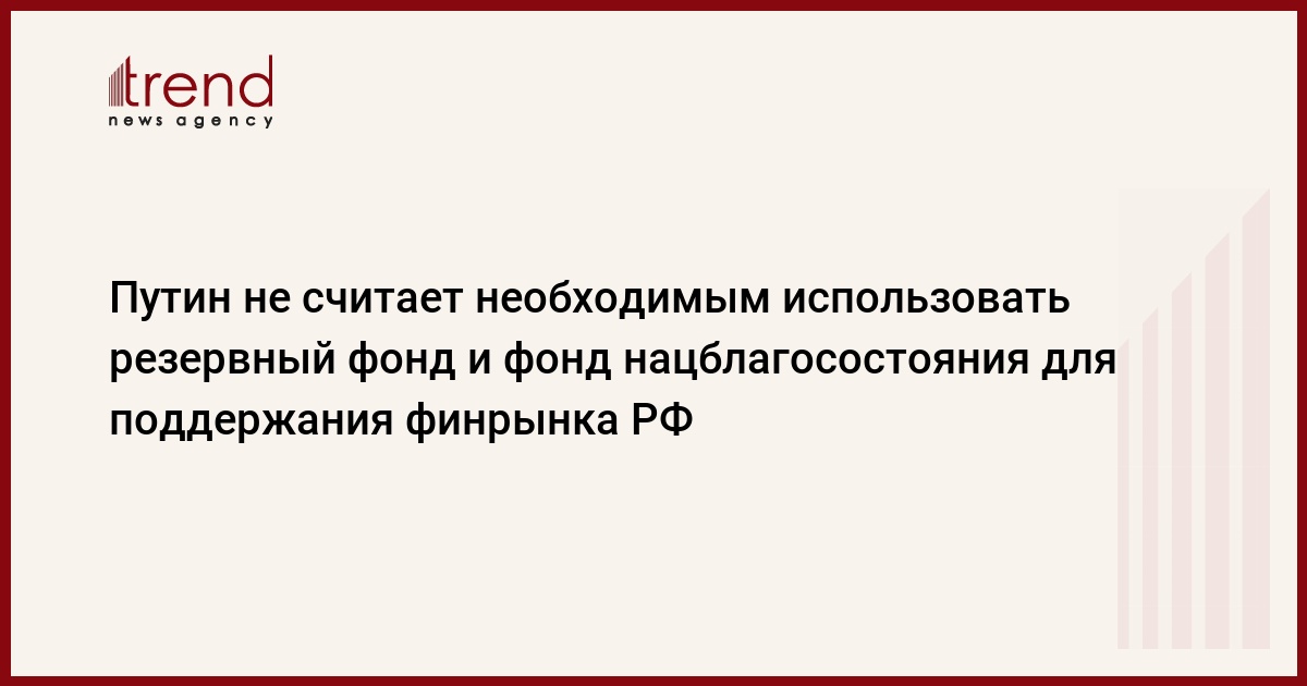 "Минфин РФ не считает на сегодняшний день возможным и необходимым использовать резервные фонды, в том числе фонд национального благосостояния, на эти цели", - заявил В.Путин на встрече с представителями иностранного бизнеса в Сочи, передает Интерфакс.