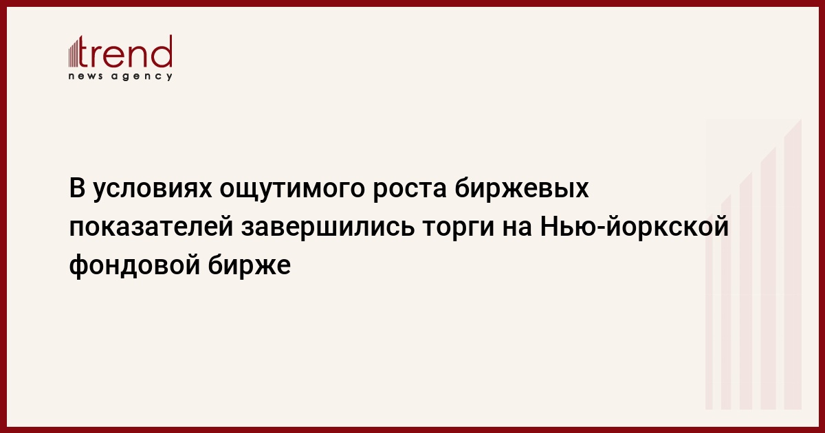 В условиях ощутимого роста основных биржевых показателей завершились в четверг торги на Нью-йоркской фондовой бирже. Так, индекс Доу-Джонса - важнейший показатель деловой активности в США - на момент окончания торговой сессии повысился на 410,03 пункта или 3,86 проц и составил 11.019,69 пункта. Индекс Доу-Джонса рассчитывается исходя из котировок акций 30 ведущих американских компаний, так называемых "голубых фишек".