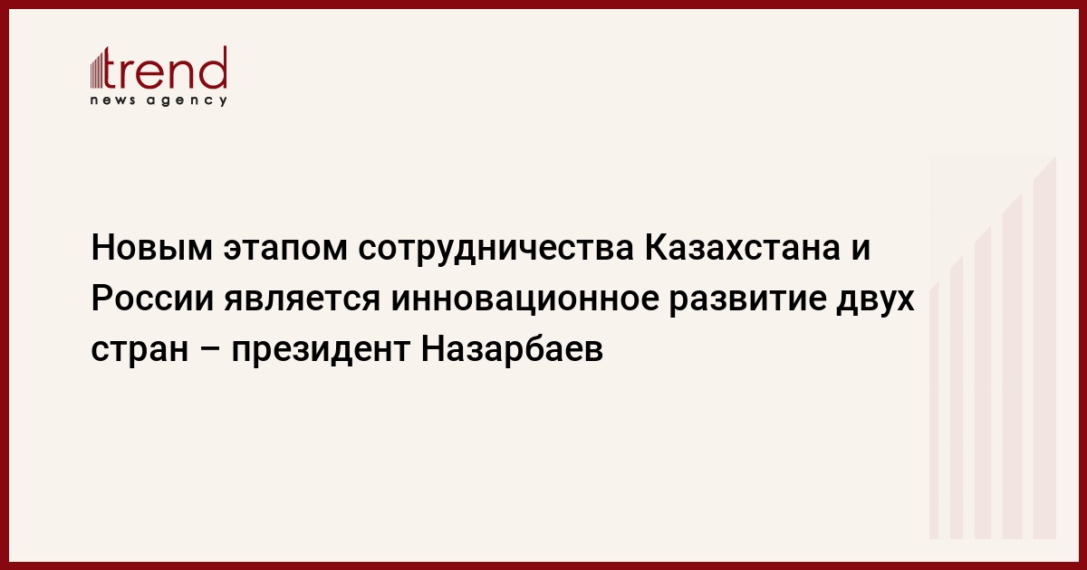 Азербайджан, Баку, 22 сентября /корр. Trend А.Бадалова/ "Казахстан и Россия вступают в новый этап инновационного развития двух стран", - сказал в понедельник на V форуме руководителей приграничных регионов России и Казахстана, транслируемом в прямом эфире телеканала "Вести", президент Казахстана Нурсултан Назарбаев.