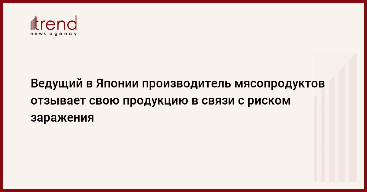 Ведущий в Японии производитель мясных продуктов компания Itoham Foods Inc. сообщила сегодня, что отзывает из японских супермаркетов свою продукцию в связи с риском повышенного содержания цианидов, передает РБК. По сообщению компании, пробы артезианской воды, используемой на заводе Itoham неподалеку от Токио, показали, что содержание в ней опасных соединений превышает официальные допустимые нормы в три раза. Itoham Foods объявила об изъятии из продажи почти 2,7 млн упаковок мясной продукции, указав, что проводит ее химический анализ на предмет возможного обнаружения ядовитых веществ, передает Associated Press.