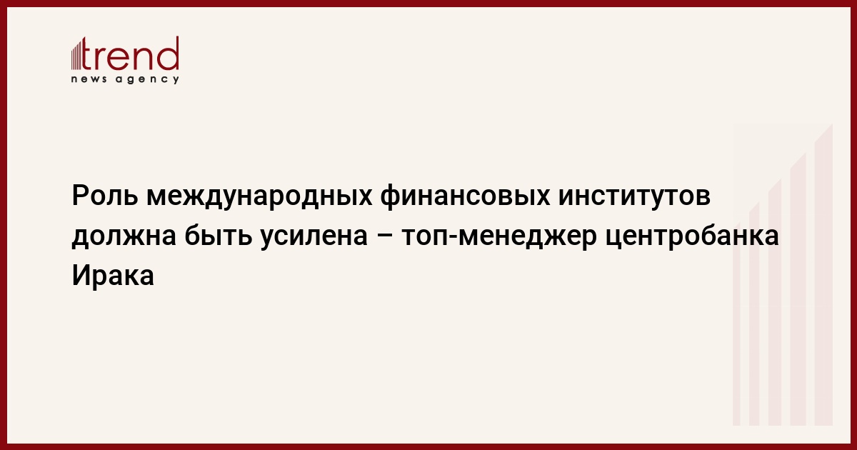 Азербайджан, Баку, 3 ноября /корр. Trend А.Бадалова/ Для улучшения мировой финансовой системы необходимо объединение усилий по укреплению международных финансовых институтов, считает старший советник по валютной политике центрального банка Ирака, директор валютного управления Каймановых островов Уоррен Котс (Warren Coats).