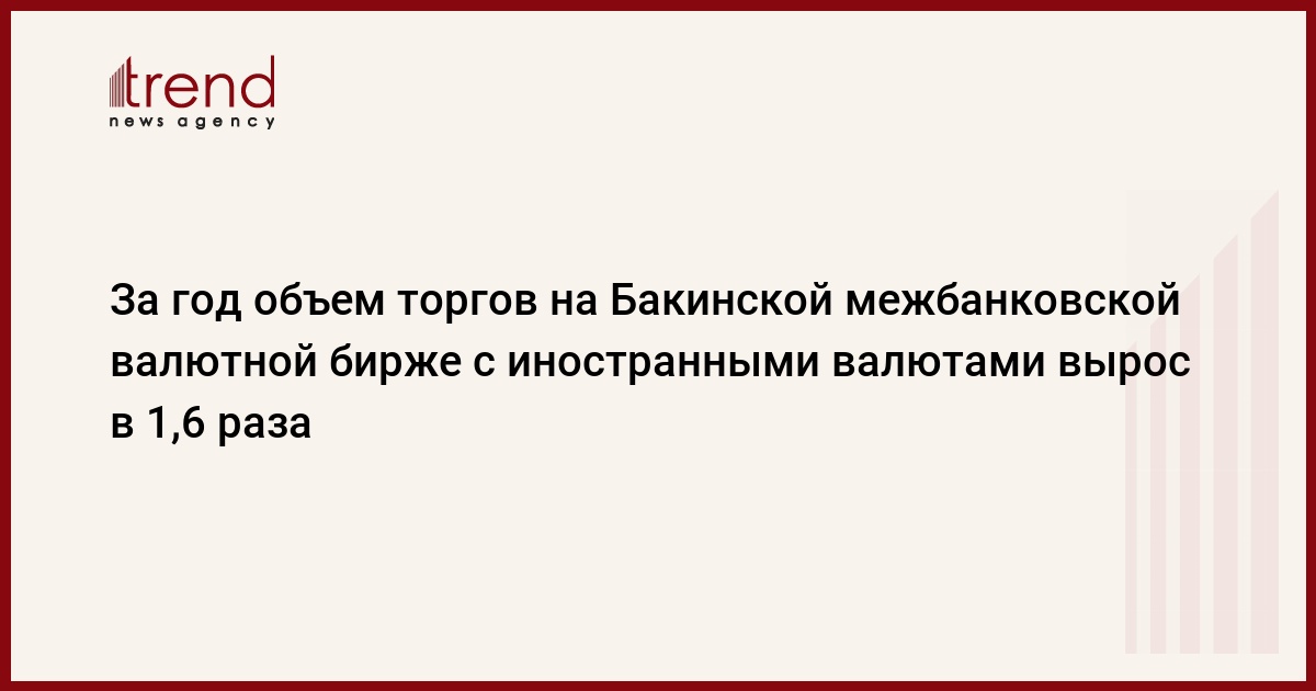 Совокупный объем торгов по итогам 10 месяцев составил 1,836 миллиардов манатов. В сравнении с показателями января-октября прошлого года объем торгов с иностранными валютами вырос более чем в 1,6 раза, или на 677,47 миллиона манатов.