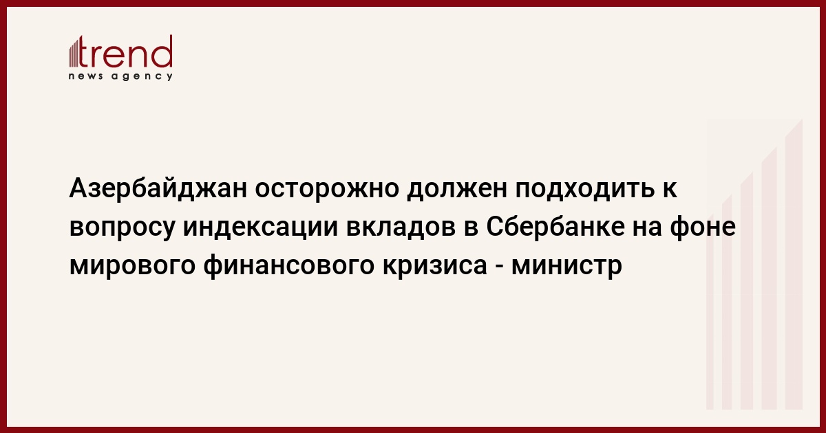 Азербайджан, Баку, 7 ноября /корр. Trend И.Халилова / Правительство Азербайджана намерено осторожно подходить к вопросу индексации вкладов населения, осуществленных в Сбербанке АзССР до 1 января 1992 года, и приступит к его рассмотрению после получения предложений от созданной в декабре 2007-го в Милли меджлисе рабочей группы, сказал в пятницу министр финансов Самир Шарифов.