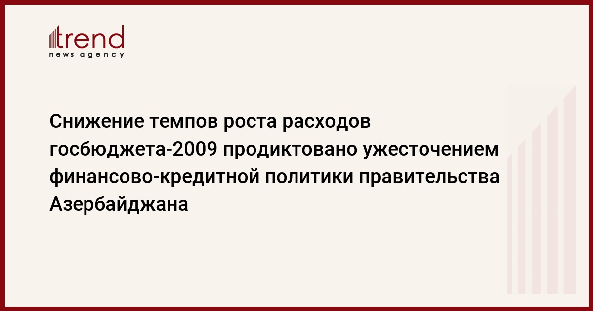Азербайджан, Баку, 11 ноября /корр. Trend И.Халилова/ "Снижение темпов роста расходов государственного бюджета на 2009 год продиктовано ужесточением финансово-кредитной политики правительства Азербайджана", - сказал во вторник председатель Счетной палаты Гейдар Асадов на пленарном заседании Милли меджлиса по обсуждению проекта госбюджета-2009.