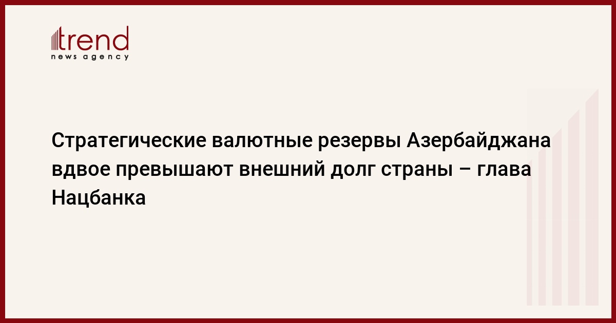 Азербайджан, Баку, 11 ноября /корр. Trend И.Халилова/ "Стратегические валютные резервы Азербайджана сегодня составляют 18,2 миллиарда долларов, что вдвое превышает валовый внешний долг страны", - сказал во вторник председатель правления НБА Эльман Рустамов на пленарном заседании Милли меджлиса по обсуждению проекта госбюджета на 2009 год.