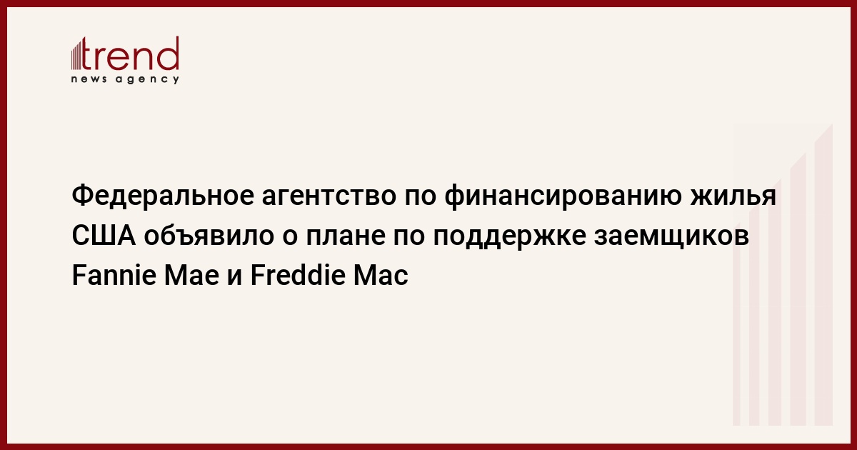 Федеральное агентство по финансированию жилья США объявило о плане по облегчению долгового бремени заемщиков, которые имеют ипотечные кредиты в Fannie Mae и Freddie Mac. Согласно решению, заемщикам, которые тратят более 38% ежемесячного дохода на выплату ипотечного кредита, снизят требуемый уровень ежемесячных выплат, передает Reuters.