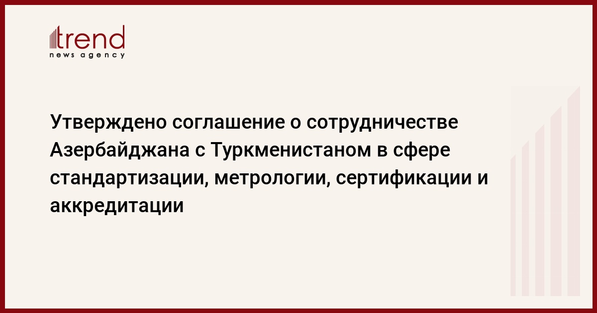 Азербайджан, Баку, 12 ноября / Trend / Президент Азербайджана Ильхам Алиев подписал Закон об утверждении соглашения "О сотрудничестве между правительством Азербайджана и Туркменистана в сфере стандартизации, метрологии, сертификации и аккредитации", подписанный 19 мая 2008 года в Баку.