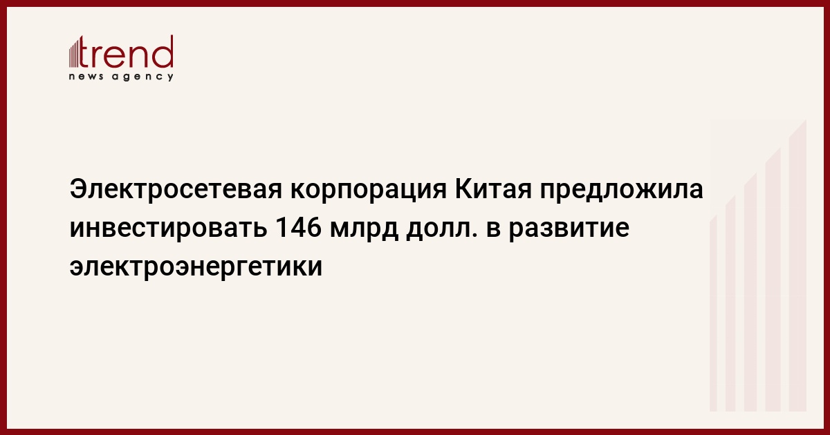 Государственная электросетевая корпорация Китая, китайский электроэнергетический гигант, выразила готовность вдвое увеличить свои инвестиции в рамках программы стимулирования национальной экономики, которая была объявлена правительством КНР 9 ноября с.г. Корпорация предлагает вложить в расширение распределительных сетей более 1 трлн юаней (146 млрд долл.) и надеется, что Госсовет КНР одобрит это предложение, передает Associated Press со ссылкой на сообщение компании.