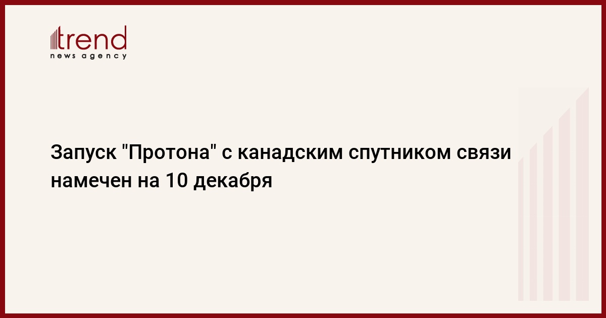 Запуск ракеты-носителя "Протон-М" с канадским спутником связи Ciel-2 намечен на 10 декабря с Байконура, говорится в сообщении Центра имени Хруничева.