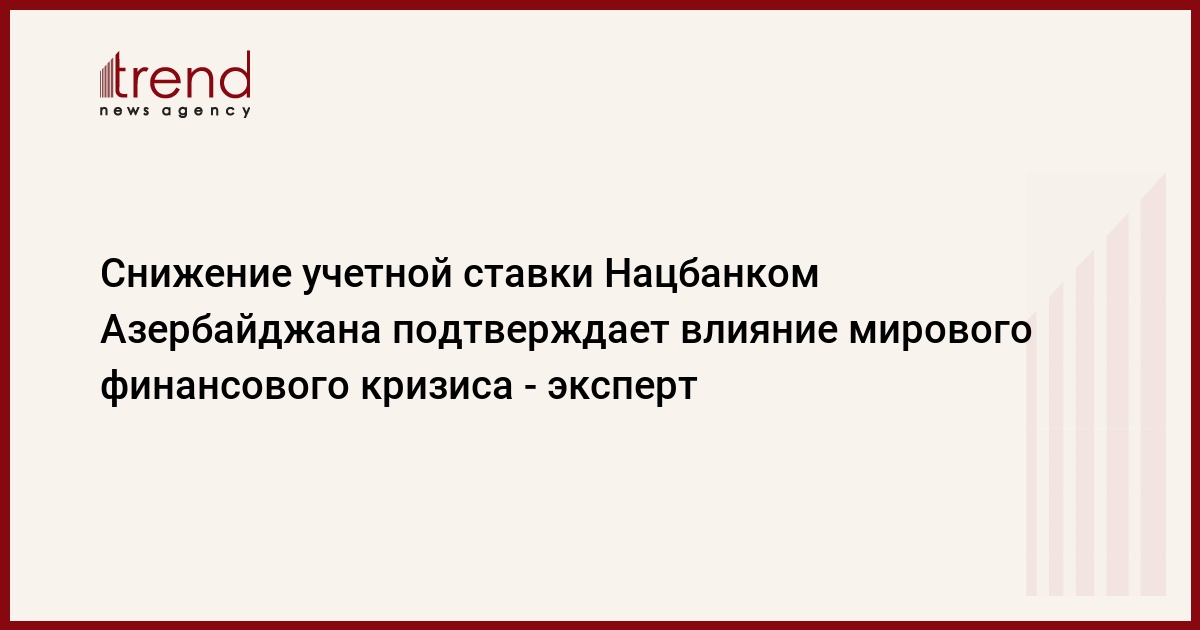 В понедельник решением правления Национального банка Азербайджана учетная ставка была снижена на два процента - до восьми процентов. Верхний предел процентного коридора снижен с 15 до 13 процентов, обязательные нормы резервирования в иностранной валюте - с девяти до шести процентов.