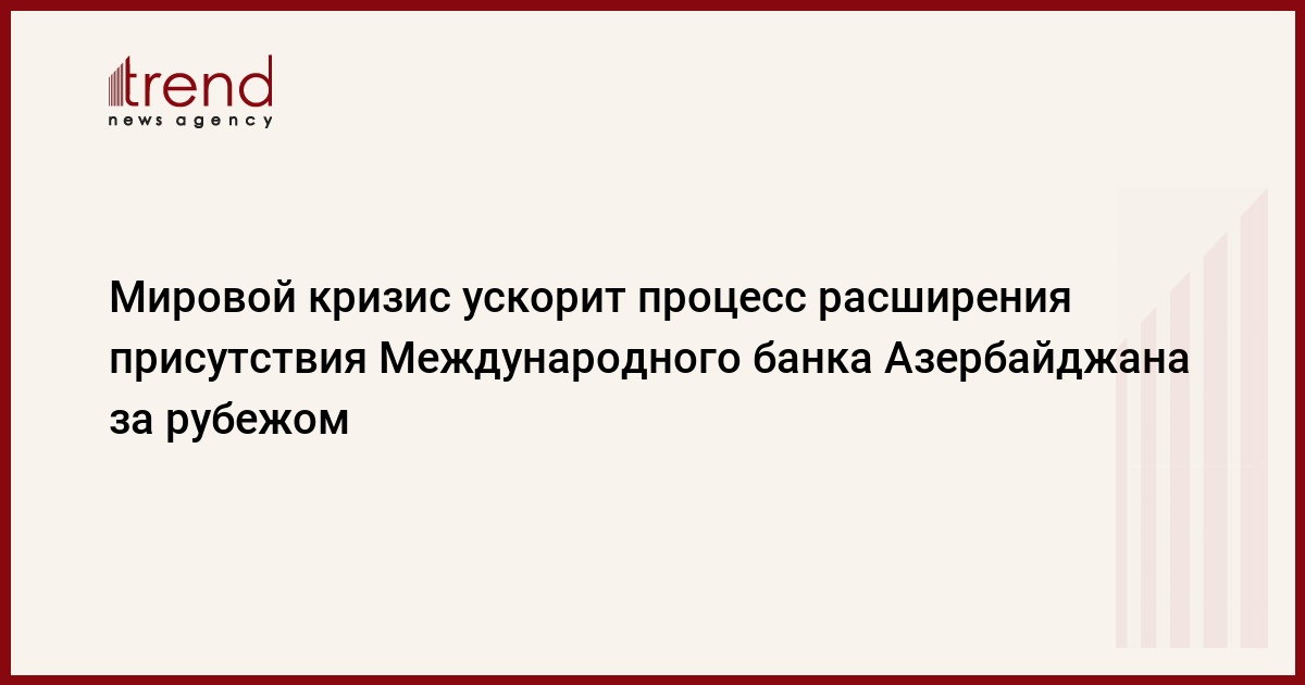 Азербайджан, Баку, 12 декабря /корр. Trend И.Халилова/ "Мировой кризис не оказал отрицательного влияния на планы Международного банка Азербайджана (МБА) по выходу на мировые рынки посредством открытия представительств и дочерних структур", - сказал председатель правления МБА Джахангир Гаджиев.