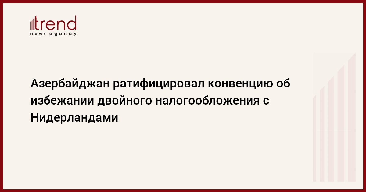 Азербайджан, Баку, 16 декабря /корр. Trend И.Халилова/ Сегодня парламент Азербайджана ратифицировал межправительственную конвенцию "Об избежании двойного налогообложения в отношении доходов и имущества и устранения уклонения от уплаты налогов" и протокол к ней с Королевством Нидерланды.