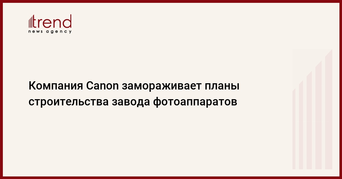 Дочерняя компания мирового производителя оптики и высокочувствительной фототехники Canon в префектуре Нагасаки - Nagasaki Canon откладывает на неопределенный срок строительство нового завода цифровых фотоаппаратов из-за падения спроса и сокращения производства, сообщили представители руководства компании.