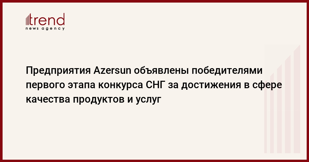 Азербайджан, Баку, 23 декабря / Trend / Государственный комитет по стандартизации, метрологии и патентам Азербайджана объявил победителями первого этапа конкурса СНГ за достижения в сфере качества продуктов и услуг сахарный завод в Имишли и завод Qafqaz Konserv, принадлежащие группе компаний Azersun Holding.
