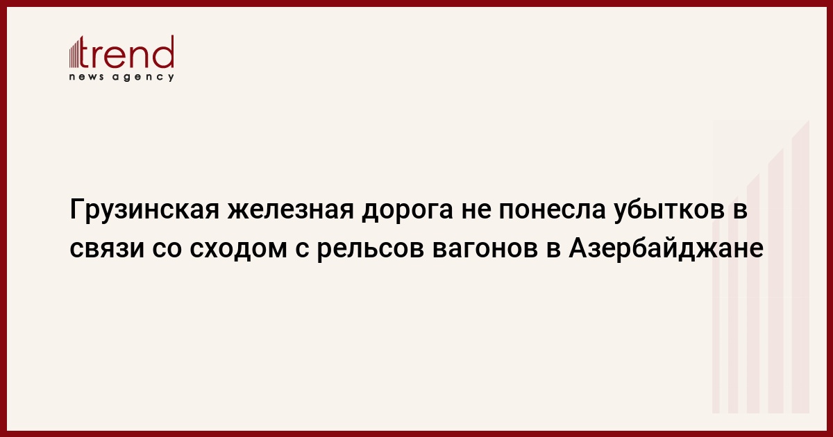Грузия, Тбилиси, 24 декабря /корр. Trend Н.Кирцхалиа/ Грузинская железная дорога не понесла убытков в связи со сходом с рельсов железнодорожных вагонов в Азербайджане. Информация об определенных проблемах поступила, но ущерба грузинской стороне нанесено не было, сказали Trend в ООО "Грузинская железная дорога".