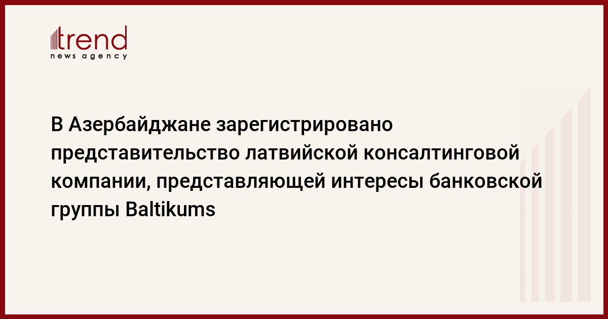 Азербайджан, Баку, 13 января /корр. Trend У.Исмайлова/ В Азербайджане зарегистрировано представительство латвийской компании Baltikums Direct SIA, входящей в международную частную финансовую группу Baltikums Bankas Grupa (BBG), сказали во вторник в министерстве налогов.