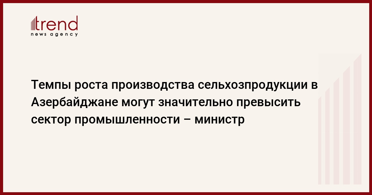 Азербайджан, Баку, 30 января /корр. Trend С.Бабаева/ В 2009 году темп роста производства сельхозпродукции в Азербайджане может значительно превысить сектор промышленности, сказал в пятницу министр сельского хозяйства страны Исмет Абасов.