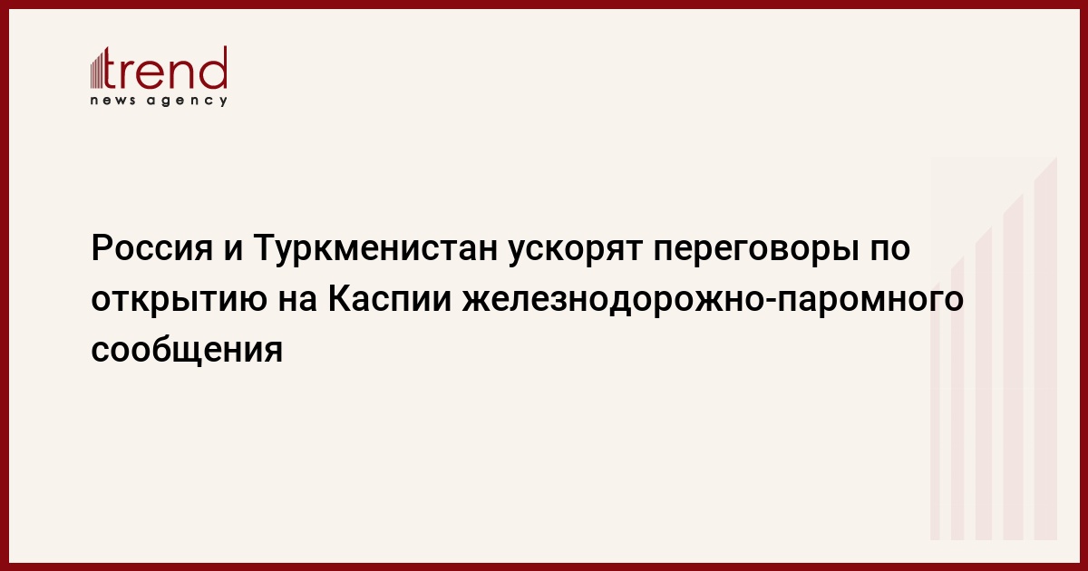 Туркменистан, Ашхабад, 5 февраля /корр. Trend Э.Гасанов/ В ходе состоявшейся сегодня встречи президента Туркменистана Гурбангулы Бердымухамедова с главой ОАО "Российские железные дороги" Владимиром Якуниным достигнута договоренность об ускорении переговоров по открытию железнодорожно-паромного сообщения на Каспии, сообщил официальный туркменский источник.