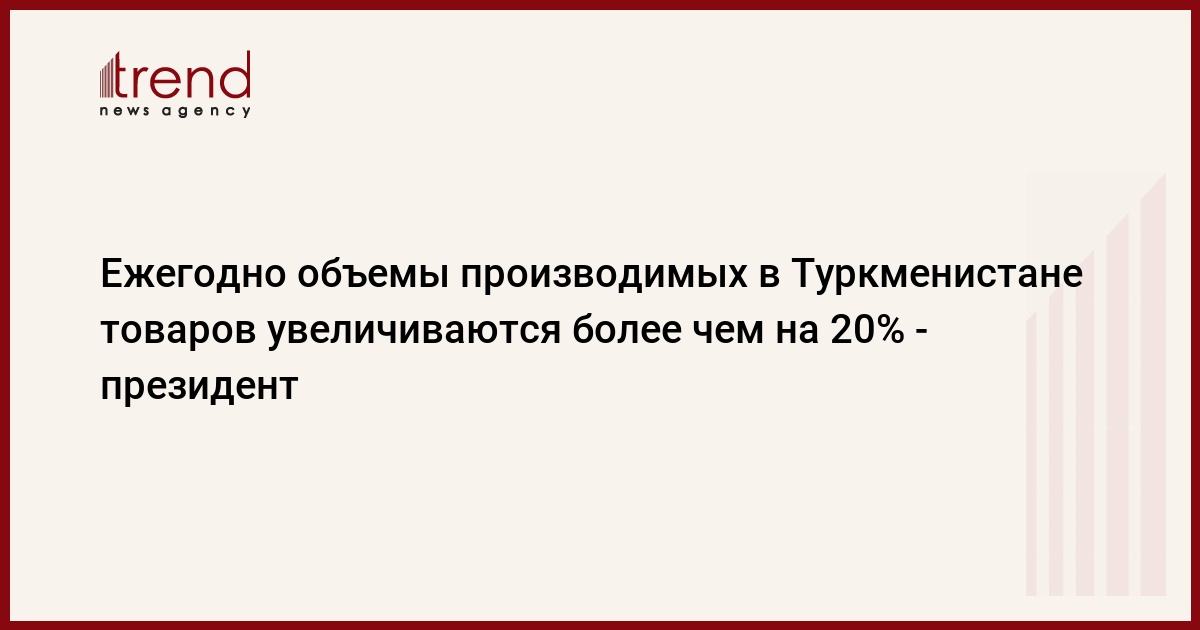 Объемы производимых ныне в Туркменистане товаров ежегодно увеличиваются более чем на 20 процентов, сказал президент страны Гурбангулы Бердымухамедов в обращении к участникам открывшегося сегодня в Ашхабаде бизнес-форума туркменских предпринимателей.