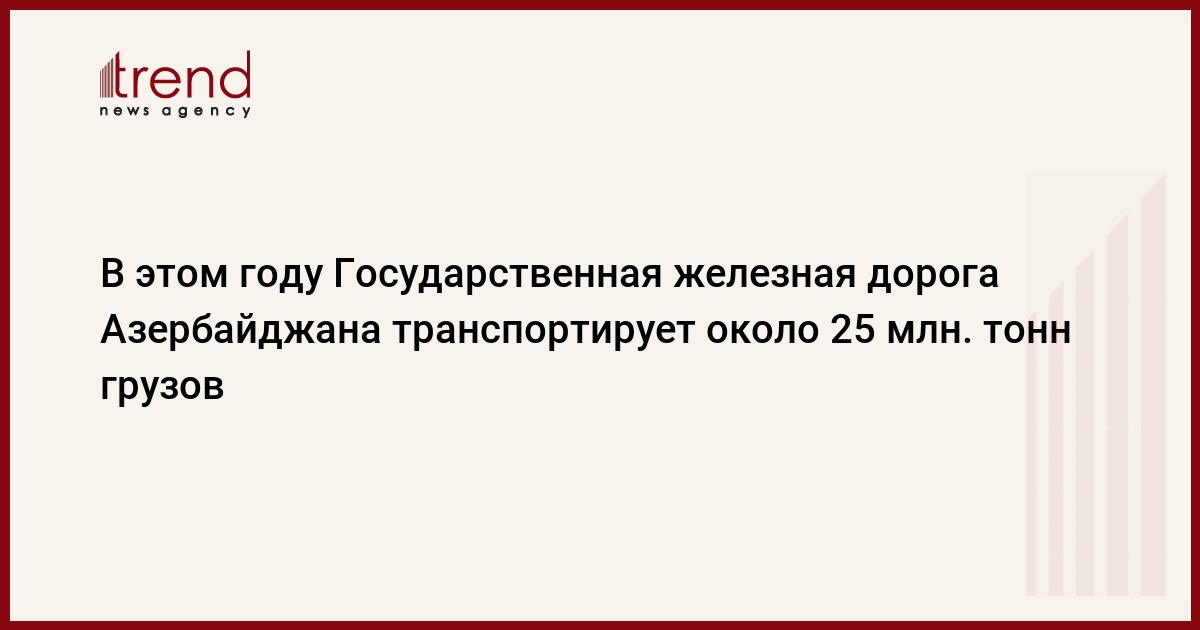 В этом году Государственная железная дорога Азербайджана (АГЖД) ожидает снижение объемов грузоперевозок до 25 миллионов тонн против 27,4 миллионов тонн в прошлом году, сказал в пятницу главный инженер АГЖД Гурбан Назиров.