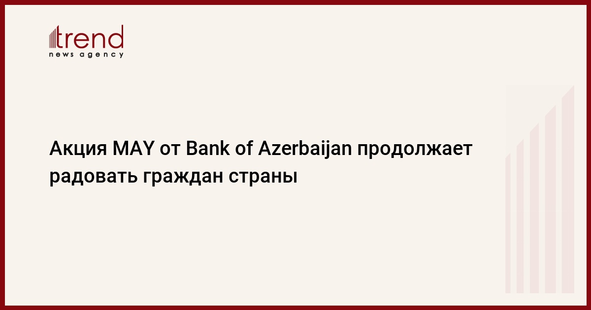 "Данная акция пришлась по душе многим соотечественникам. За первую неделю акции MAY в банк обратилось множество людей, что лишний раз говорит о том, что любое начинание Bank of Azerbaijan направлено исключительно на повышение благосостояния граждан", - говорится в сообщении банка.