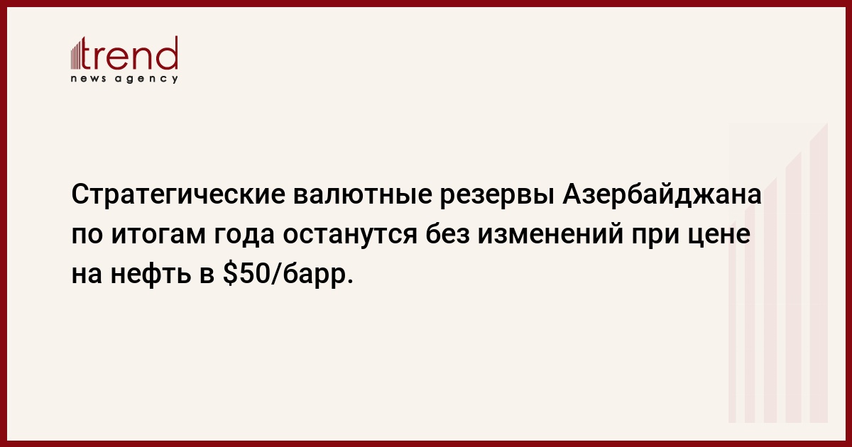 По расчетам Центрального банка Азербайджана (ЦБА), при цене на нефть в 50 долларов за баррель, до конца года можно будет сохранить стратегические валютные резервы на уровне начала года, а при цене в 60 долларов их уровень будет еще выше, сказал и.о. генерального директора Центробанка Хагани Абдуллаев.