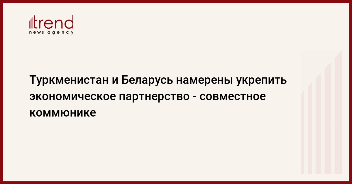 В совместном коммюнике, подписанном по итогам официального визита 18-19 июня президента Беларуси Александра Лукашенко в Туркменистан сказано, что две страны "выразили стремление к укреплению экономического партнерства на основе принципов равноправия и взаимной выгоды, а также высказались за максимальное использование потенциальных возможностей двух стран".