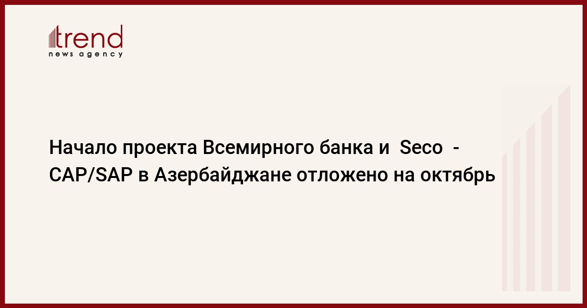 Начало реализации совместного проекта правительства Азербайджана, Всемирного банка и Госсекретариата Швейцарии по экономическим вопросам (Seco) по усовершенствованию бухгалтерии в корпоративном и государственном секторе (CAP/SAP) стоимостью в 24 миллионов долларов отложено на октябрь, сказала в среду глава национальной программы Seco в Азербайджане Наиля Сафарова.