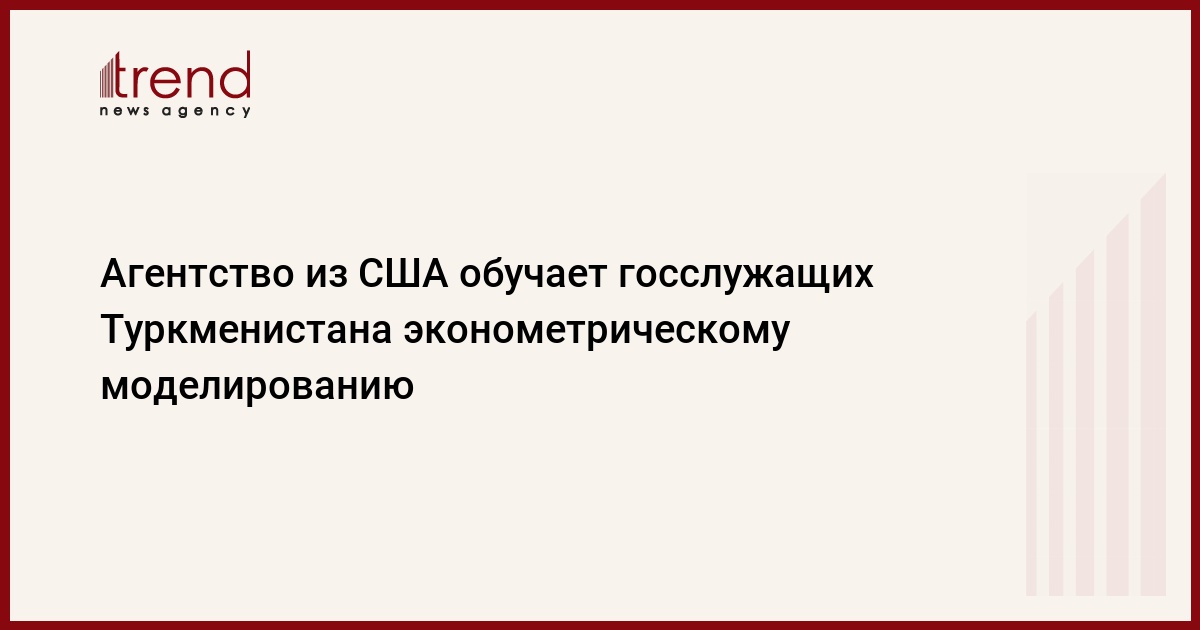 Агентство США по международному развитию (USAID) сегодня завершил в Ашхабаде тренинг обучения по эконометрике для специалистов экономического и банковского сектора Туркменистана, говорится в пресс-релизе агентства.